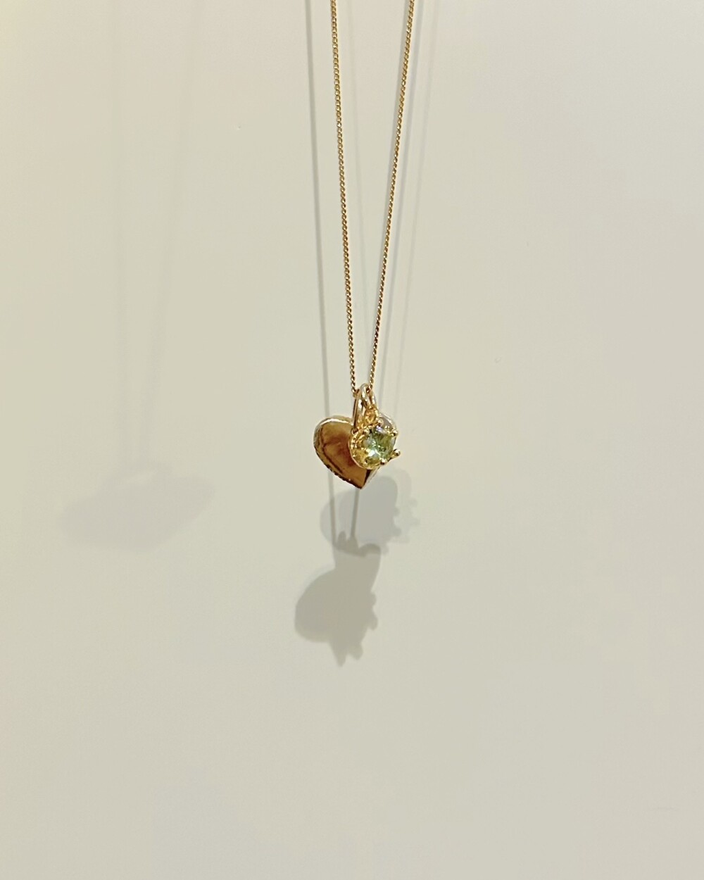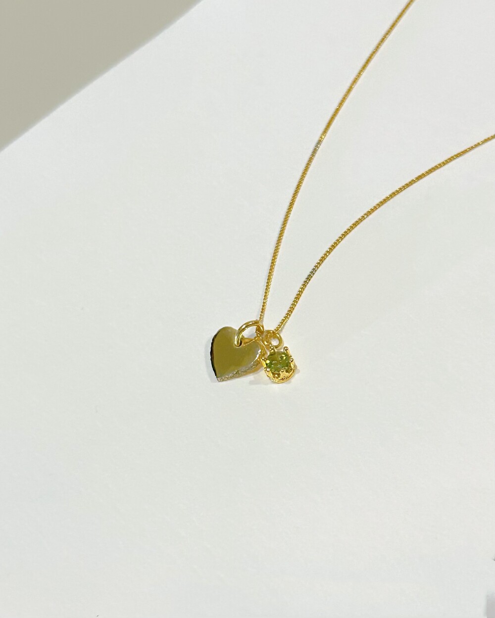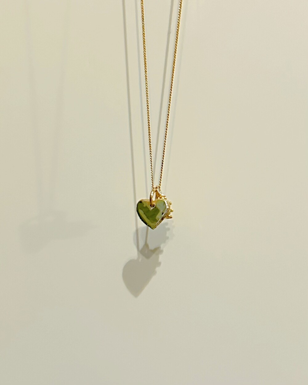 골드 하트 팬던트에 크린 큐빅 팬던트가 레이어링 된 유니크한 스몰 팬던트 입니다.