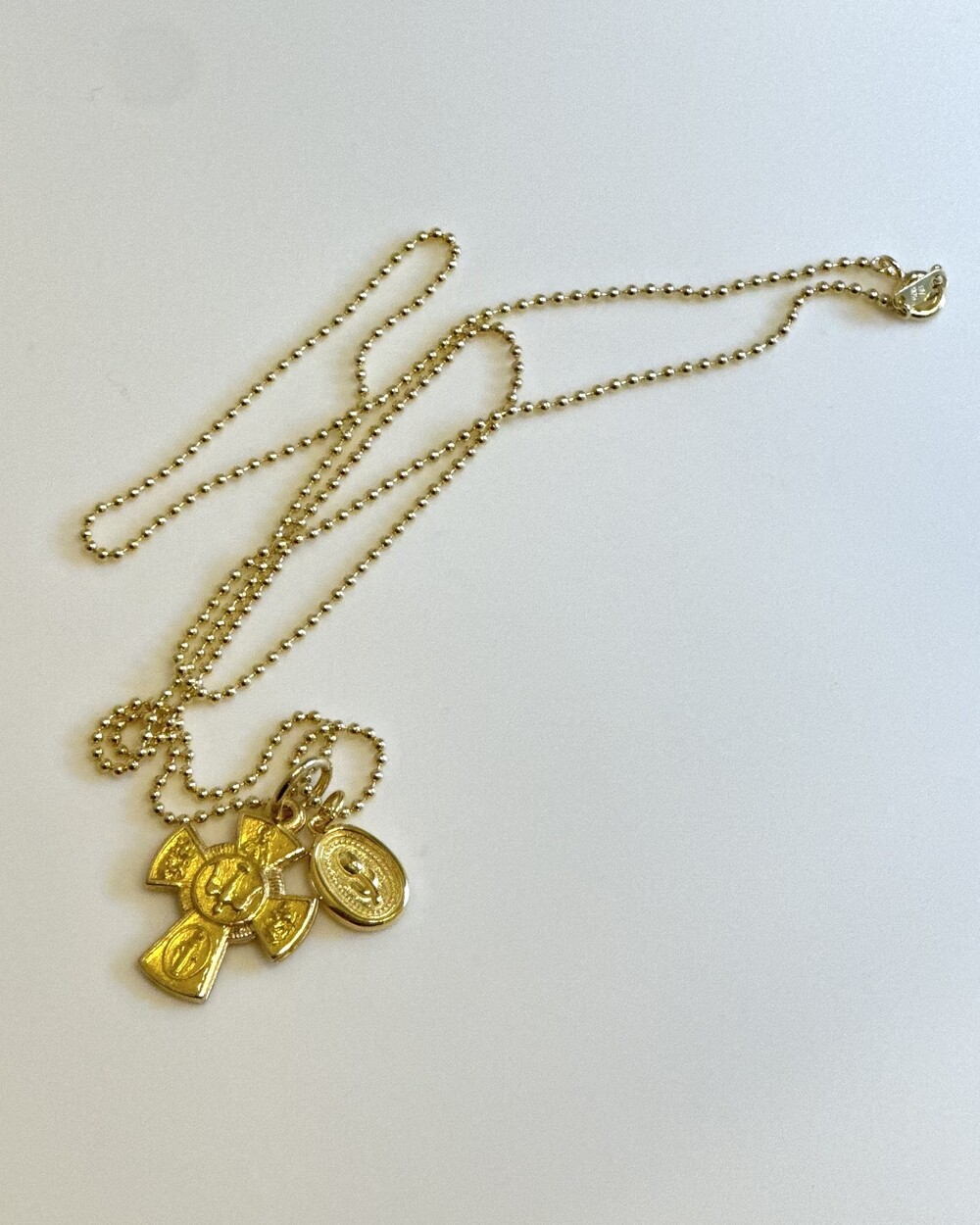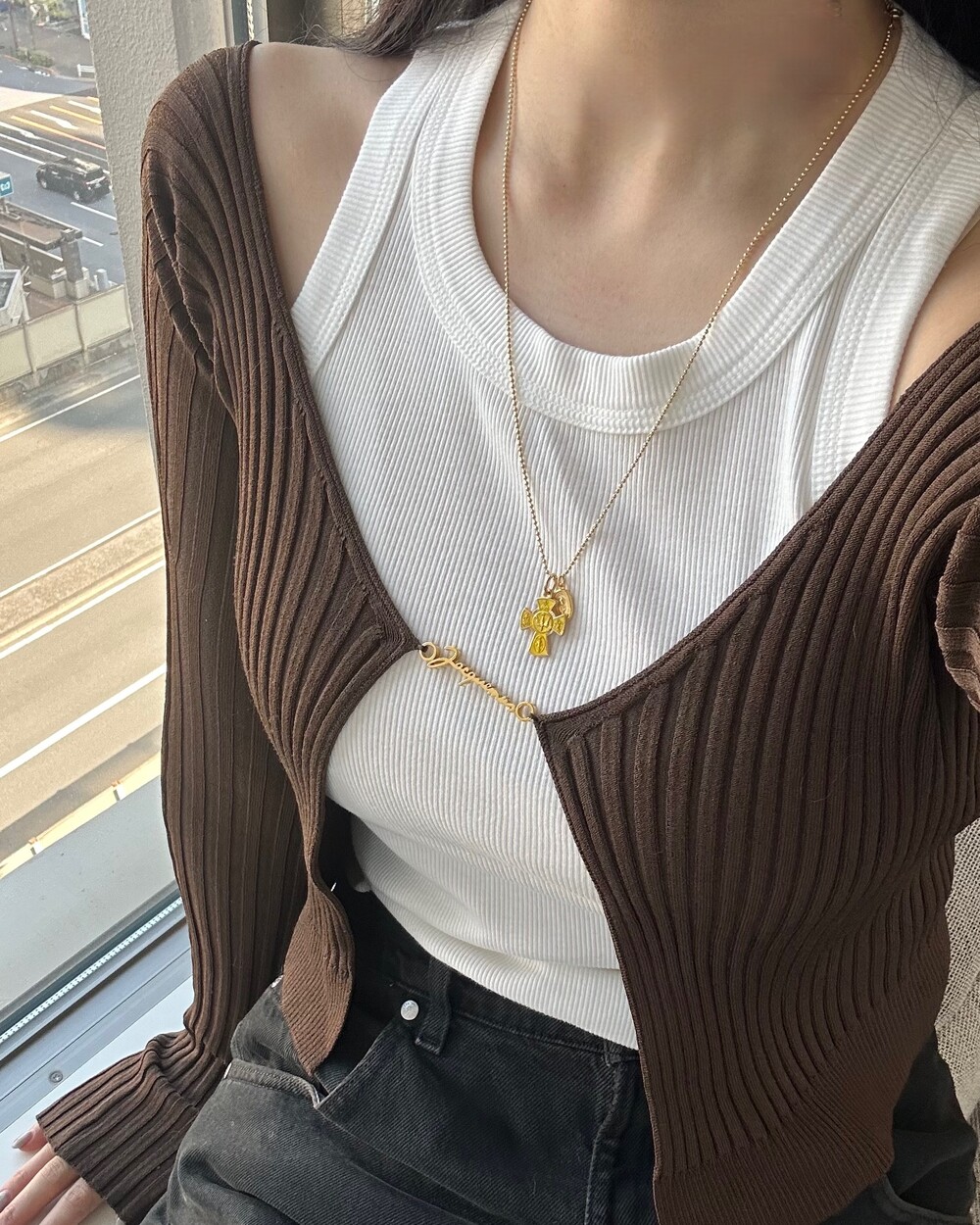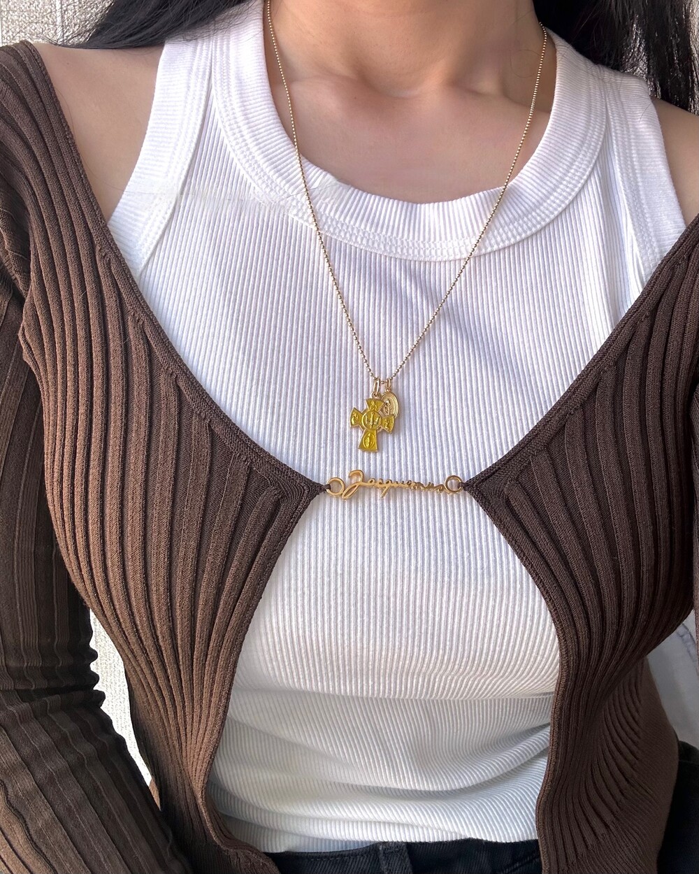 롱 기장 체인에 수입 빈티지 십자가 팬던트, 로즈 팬던트가 레이어링 된 유니크한 셀렉트 라인 제품입니다.