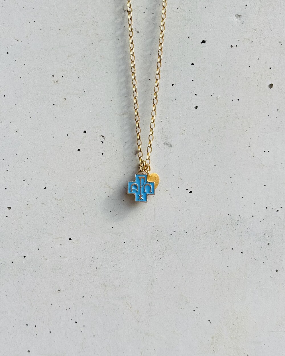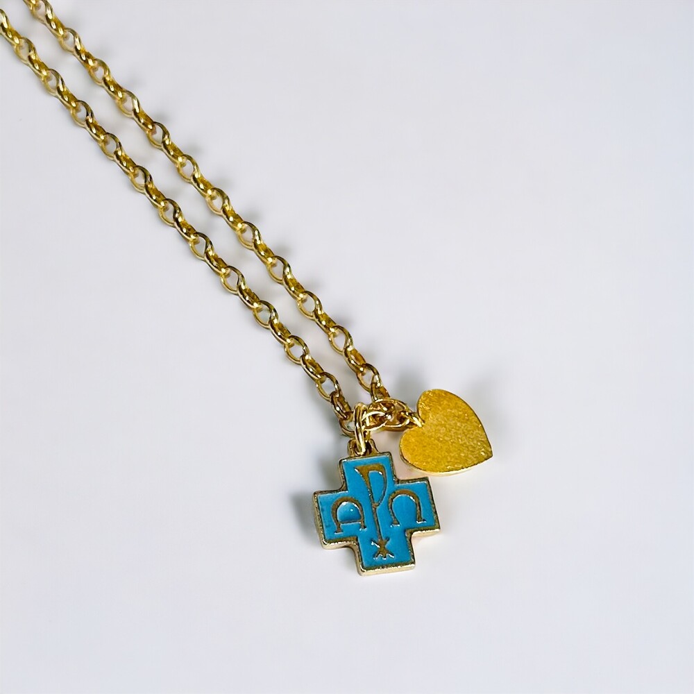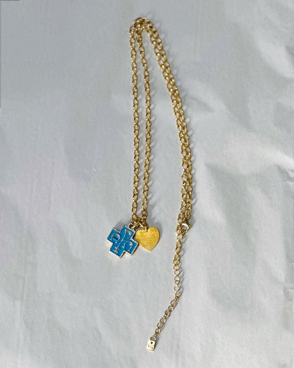 블루 크로스 빈티지 팬던트에 칸티크 시그니쳐인 하트 팬던트가 레이어링 된 제품입니다.