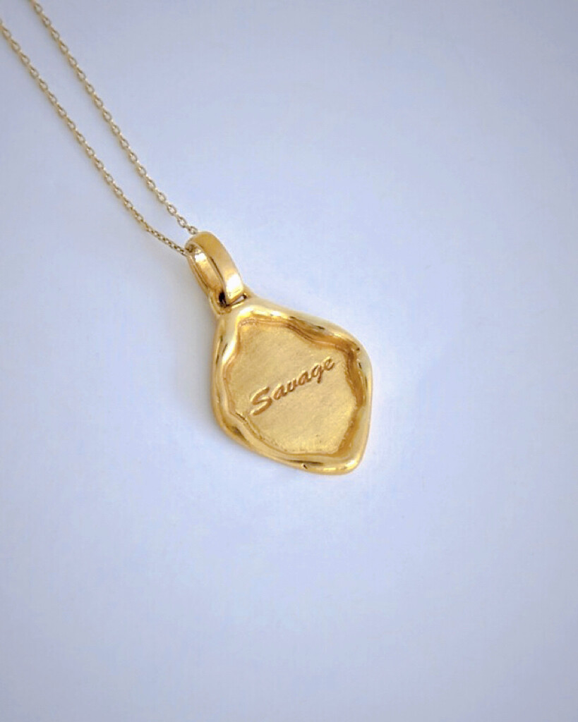 비정형 실루엣 위에 ‘Savage’ 각인을 더한 펜던트 네클리스입니다.