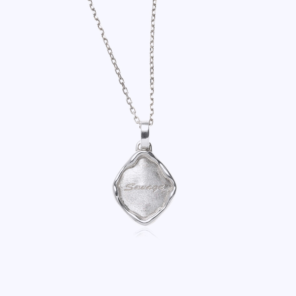 비정형 실루엣 위에 ‘Savage’ 각인을 더한 펜던트 네클리스입니다.