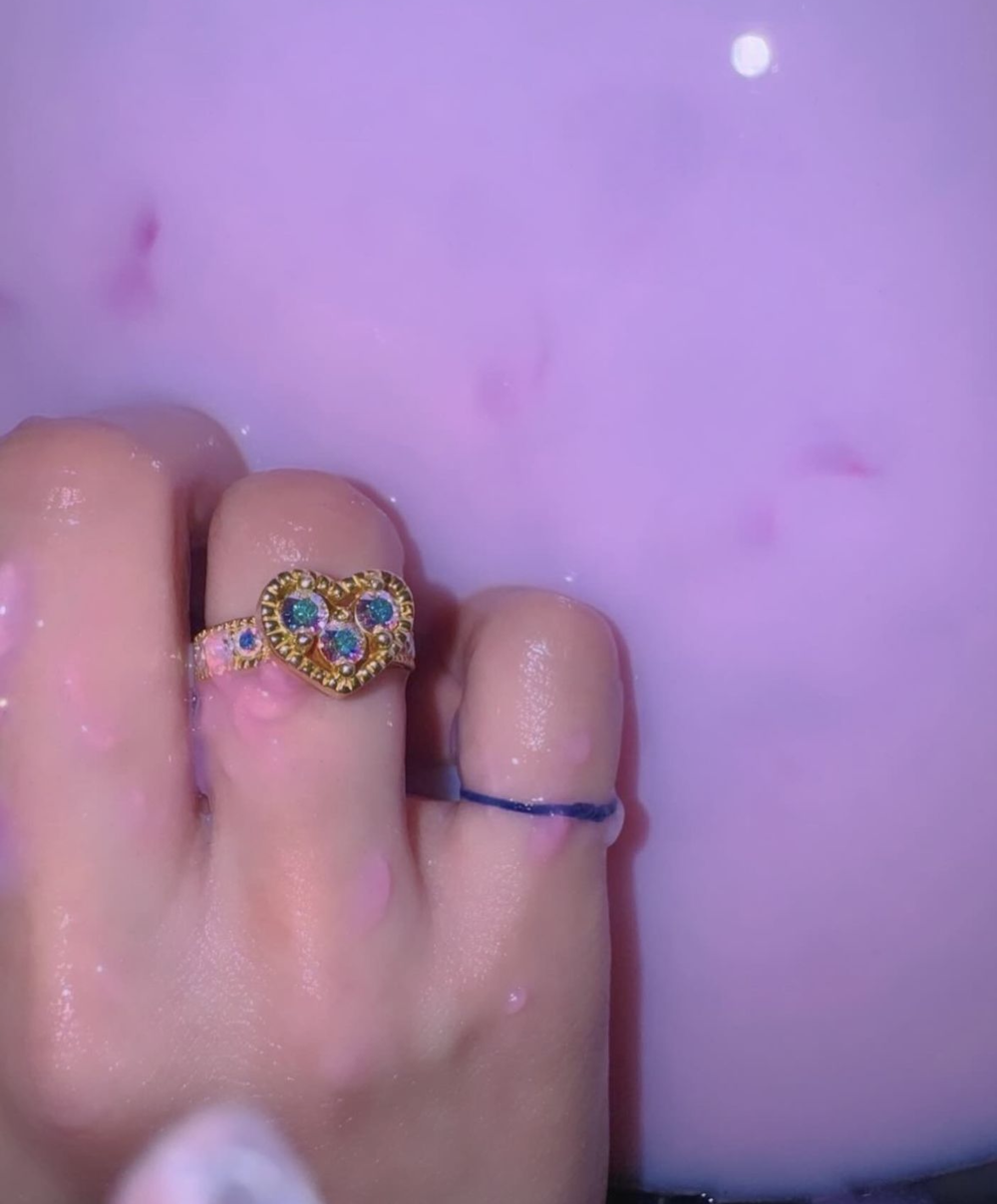 빛을 머금은 스톤들이 각도에 따라 색을 달리하며, 하트 모티브를 더 입체적으로 보여줍니다.